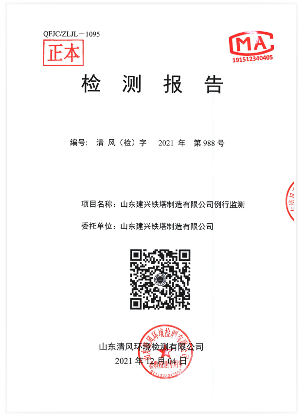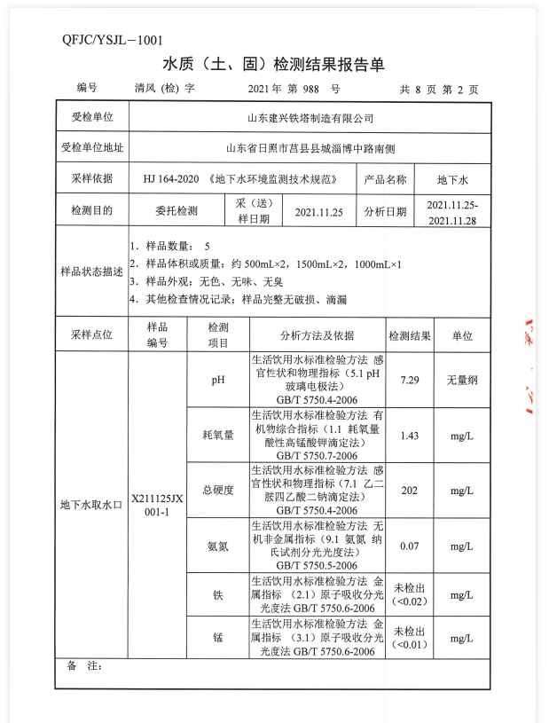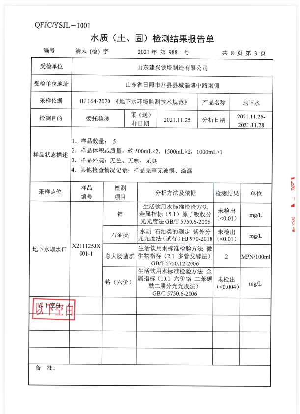 山东建兴铁塔2021年地下水土壤检测报告