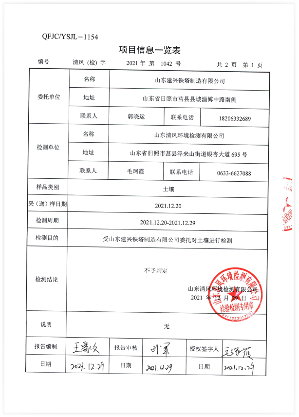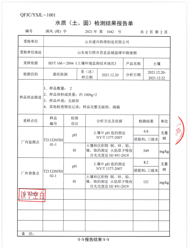 山东建兴铁塔土壤监测报表
